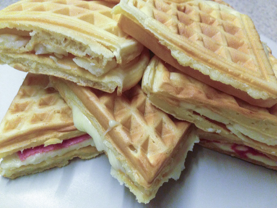Bütün Waffleleri bitirdikten sonra içine ne beğenirseniz onu koyun. Ben tulum peynirli, peynir sucuk, salam peynir gibi bir sürü çeşit denedim. Hepsi birbirinden güzel oluyor.