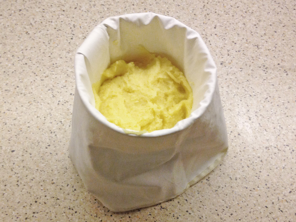 Süzülmüş patatesleri tekrar kuru bir tencereye yada kaba alıyoruz. Tereyağını, bir yumurtanın sarısını içine atıyoruz.