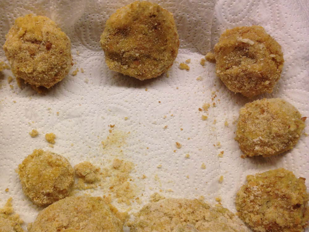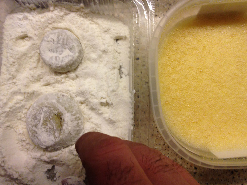Un ve nişastayı iyice karıştırın. Yumurtayı çok güzel çırpın. Bakın burası çok önemli. Yumurtayı iyice çırpmazsanız kaba banıp çıkarttığınızda yumurta elinize yapışıp gelir. En son kaplama içinde ister galeta unu kullanın, isterseniz ekmek kırığı kullanın… Ben evde kalan ekmekleri iyice kuruduktan sonra blender’dan geçirip kavanozda biriktiriyorum. Ayrıca galeta ununa gerek kalmıyor.